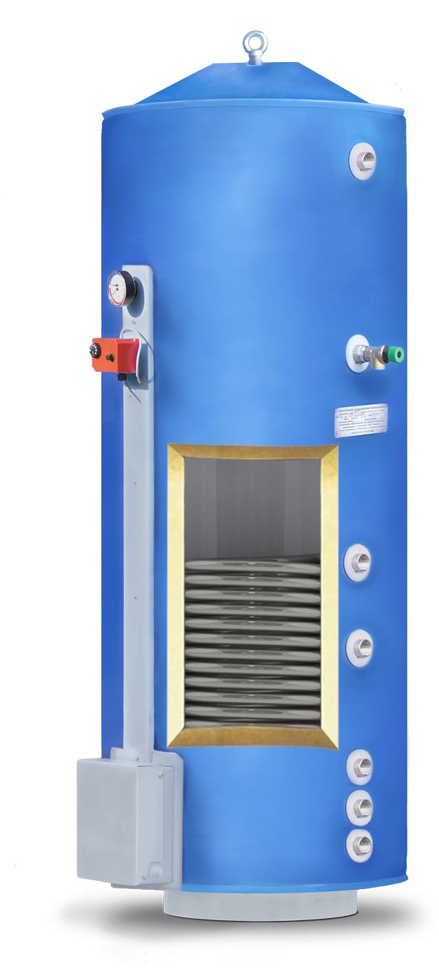 Встроенный трубчатый теплообменник 60 кВт представляет собой спираль из нержавеющей трубы, расположенную в нижней части бака. Он обеспечивает нагрев воды в баке водонагревателя горячим теплоносителем (водой или антифризом), проходящим через теплообменник. Регулирование температуры воды в водонагревателе осуществляется электромагнитным клапаном по сигналу от терморегулятора.